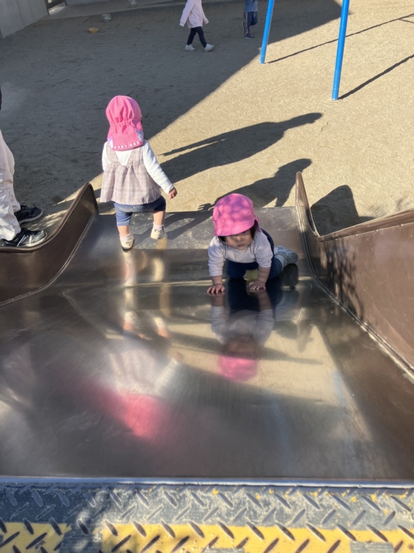 すべり台ってこっちから登れないの!?と何度も登ろうとしてはつるつる~と下りてしまうのも