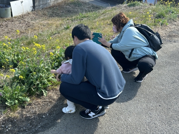みんなでお散歩をしながら、花や虫を探したり、