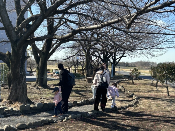 広場でお茶休憩もしたよ✨デコボコ石も簡単に渡れるよ!